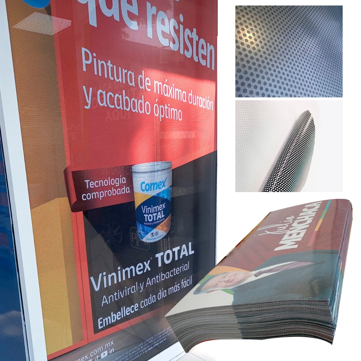 Transforma cualquier superficie en un espacio publicitario sin perder claridad desde el interior. El vinil microperforado ofrece impacto visual, resistencia y funcionalidad en un mismo material.
